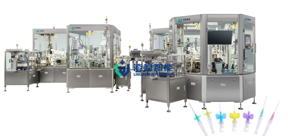 7) 、 تتمثل الوظائف الرئيسية للجهاز في تجميع جميع مكونات القنية الوريدية: قسطرة تفلون ، حامل تفلون ، إبرة ، محور إبرة ، بيت الجناح ، غطاء منفذ الحقن ، سدادة ، مرشح ، غرفة الفلاش باك ، غطاء واقي ، تطبيق لاصق لاصق للأشعة فوق البنفسجية ، تطبيق زيت السيليكون ، علاج ، اختبار قوة الرسم.